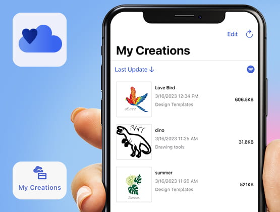Use seu dispositivo móvel para criar designs de bordado únicos e bonitos, tão especiais quanto você.